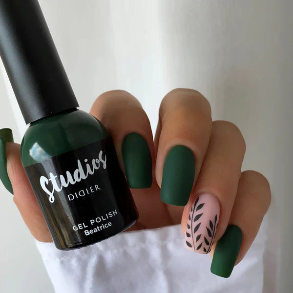 BEATRICE: es un tono verde oscuro atemporal, la elección perfecta para un look más discreto o un complemento ideal para diseños de uñas creativos.