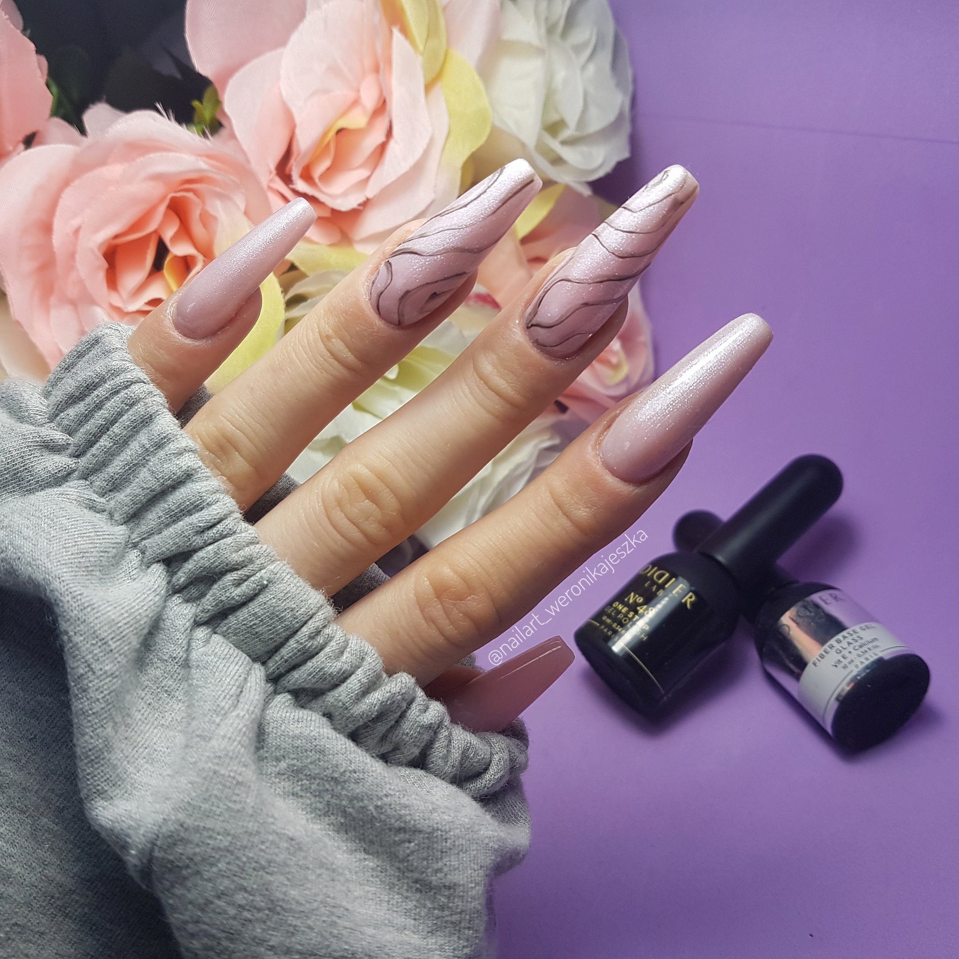 - Primera capa fina de esmalte: lámpara LED - 60 s, UV - 2 min.